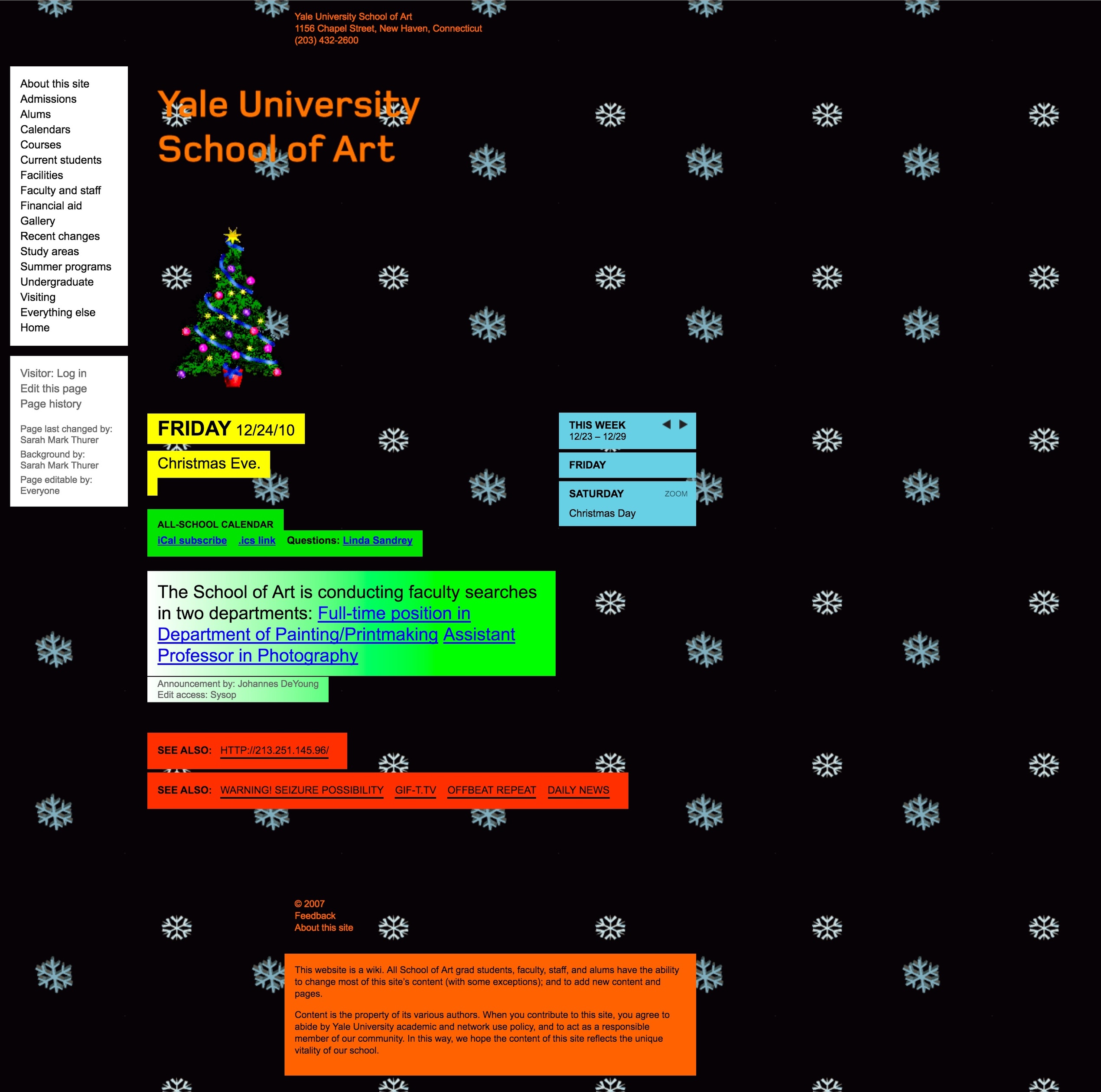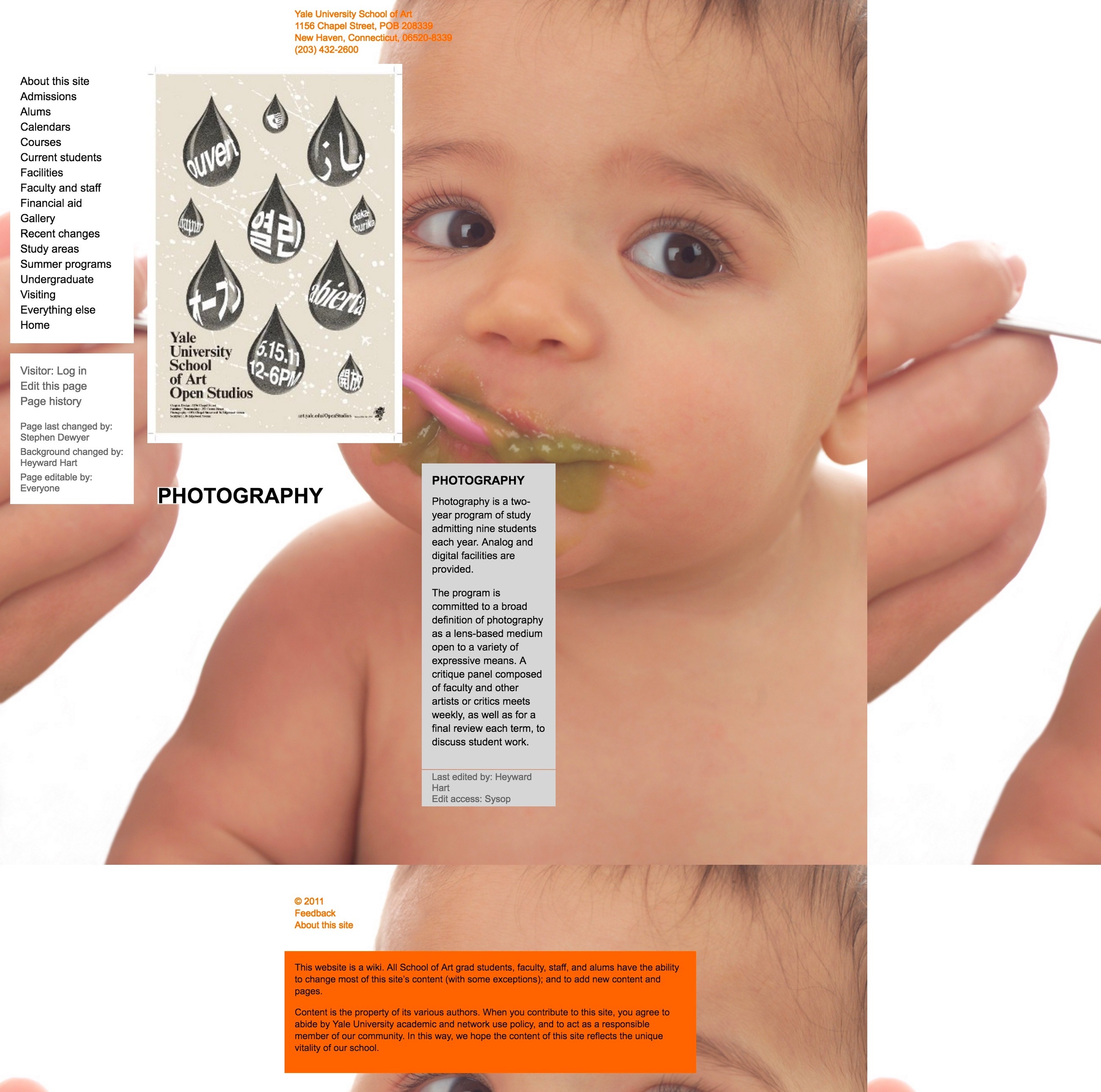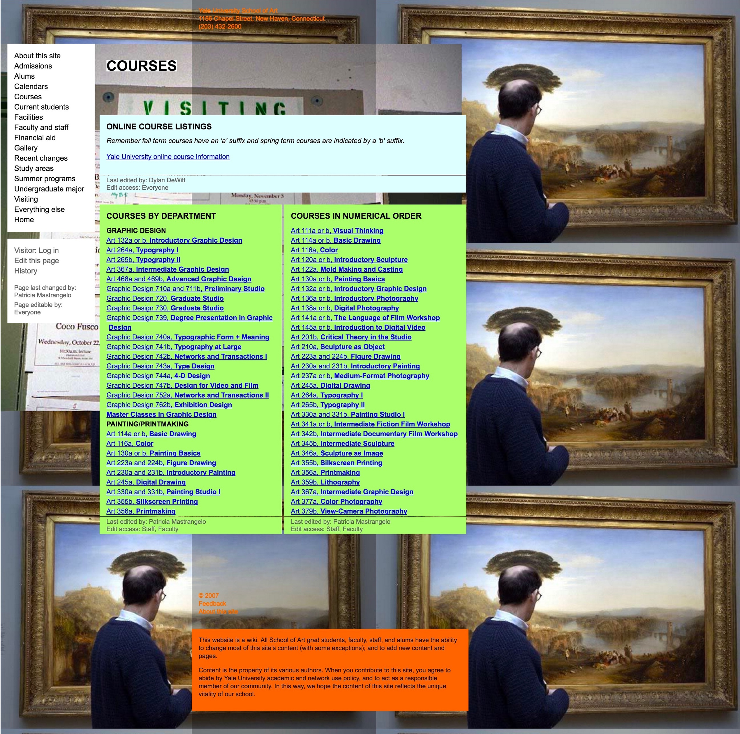 To accomplish these goals, we made the entire website editable and expandable by all 200+ students, staff, and faculty, with no training and using only a web browser. It’s a custom-built wiki that allows visual as well as textual expression through a system of versatile modules, which allow both a consistent identity for the site, and endless permutation and subversion of that identity.