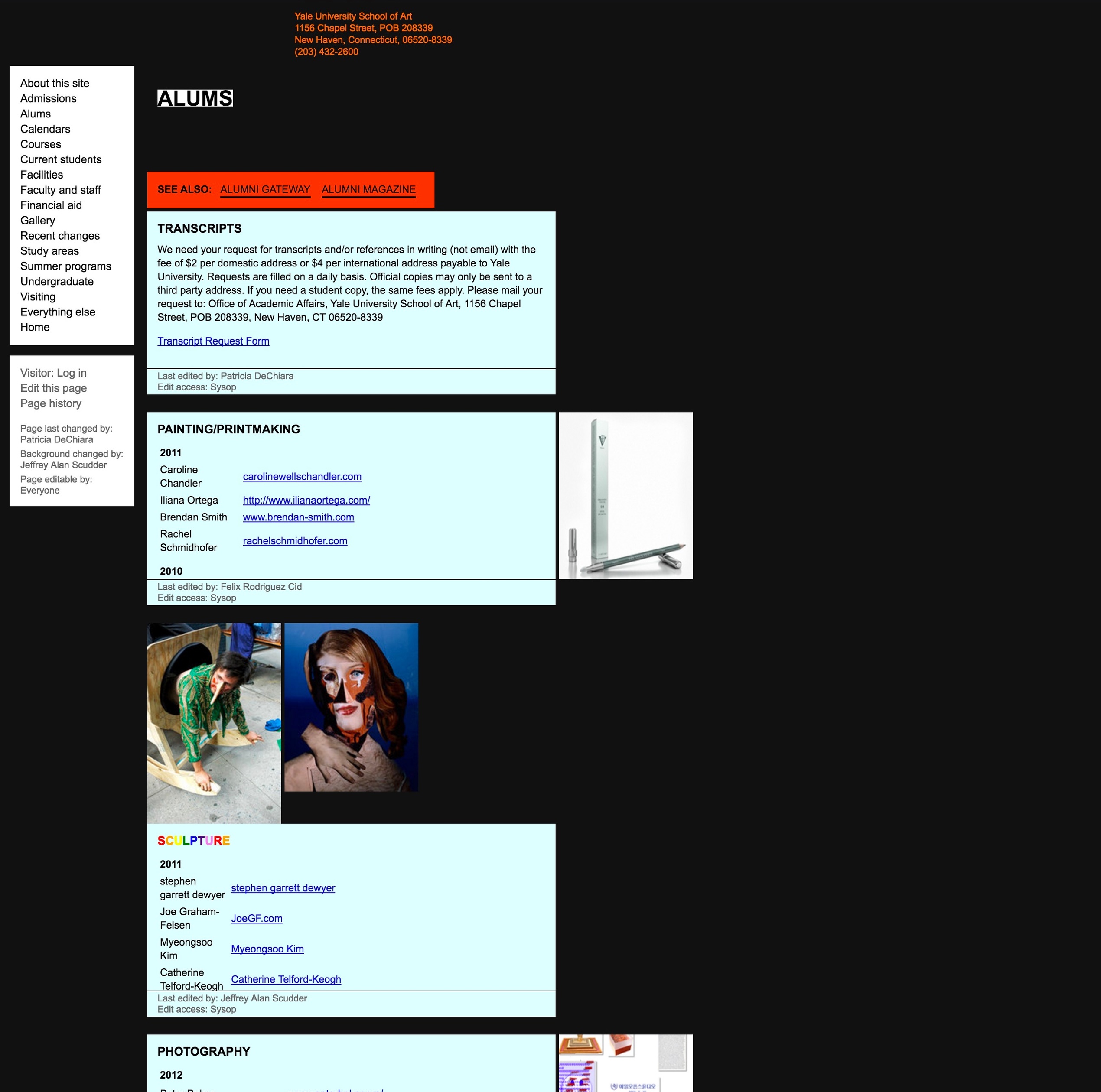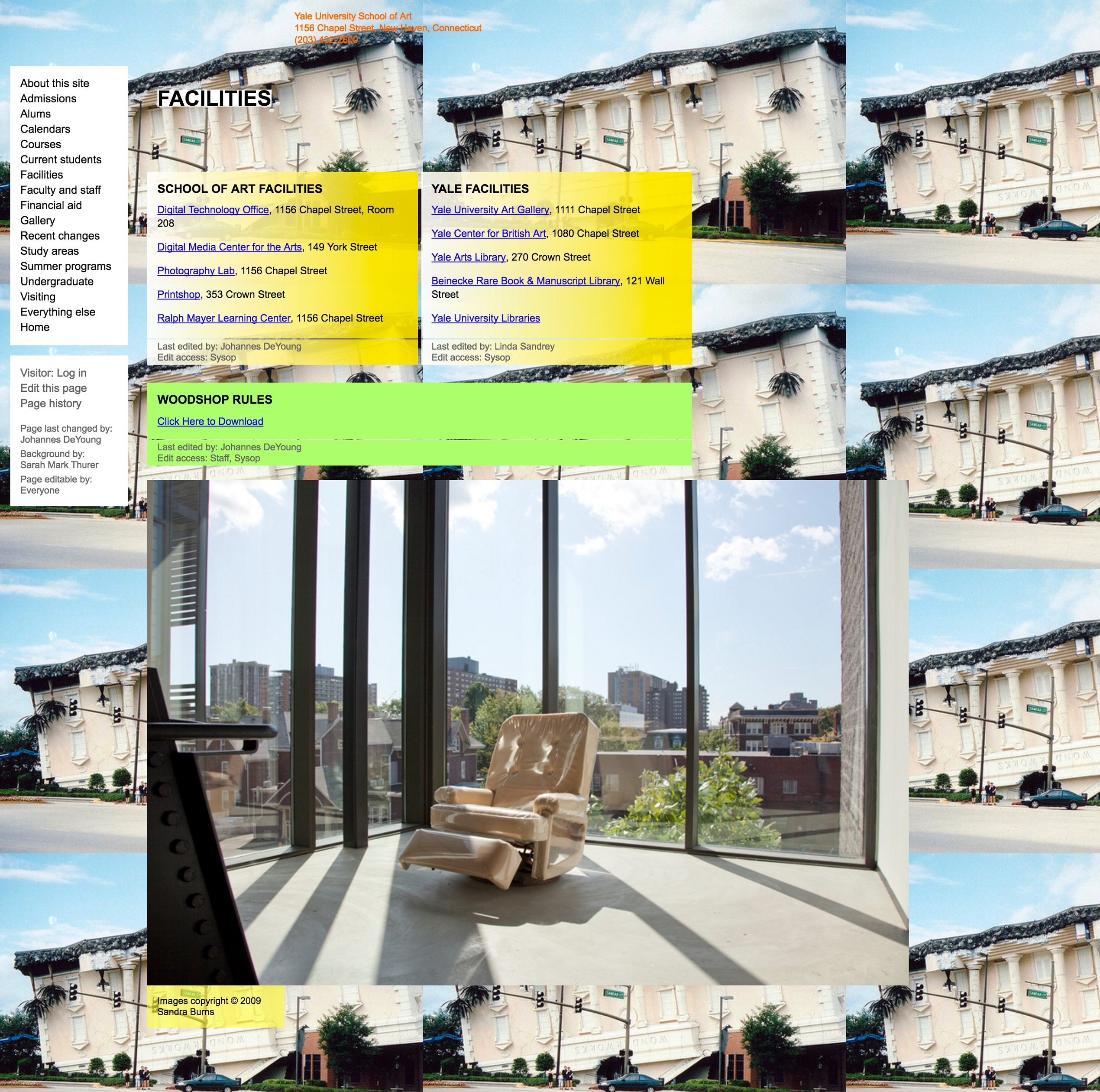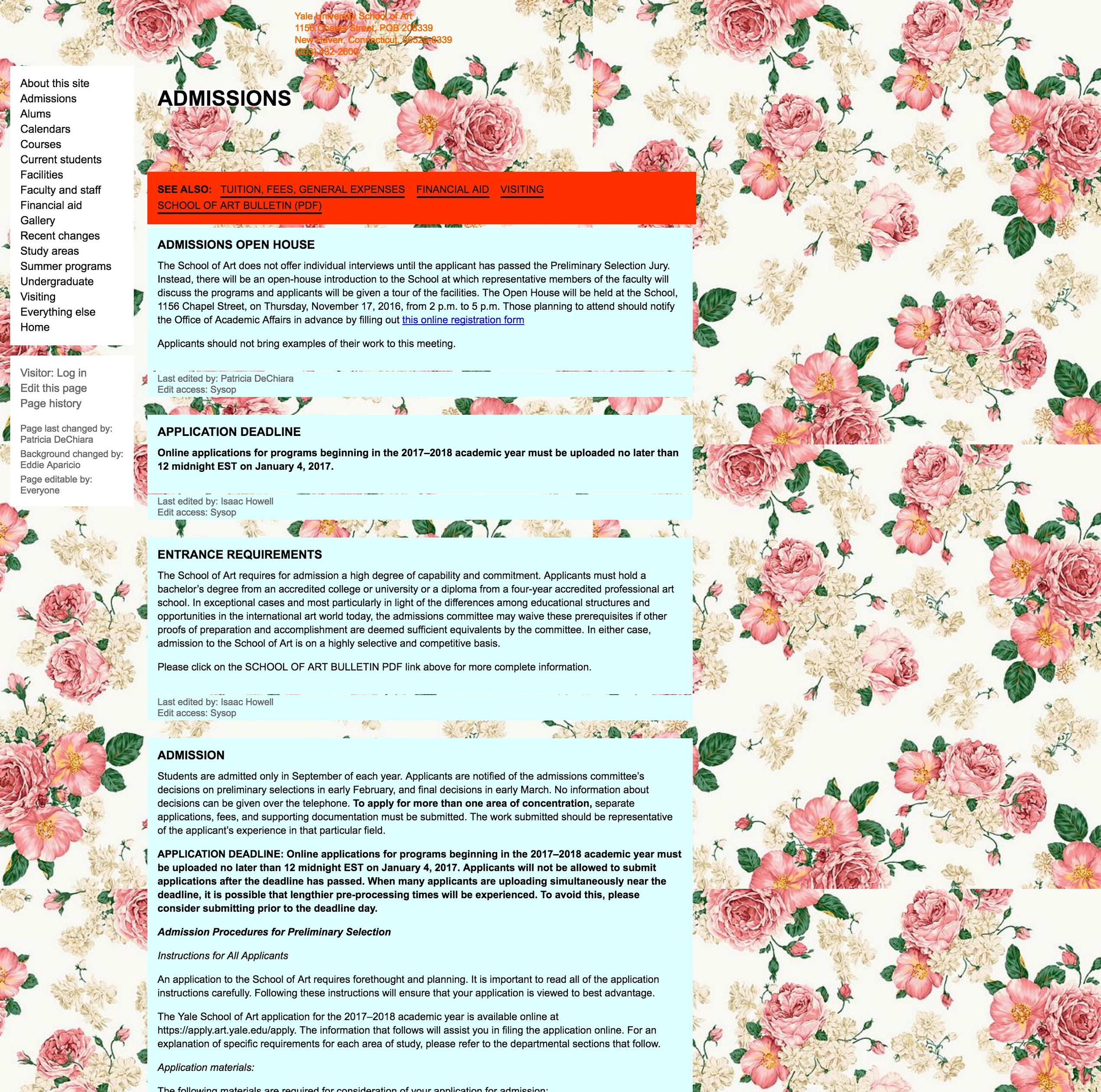 To accomplish these goals, we made the entire website editable and expandable by all 200+ students, staff, and faculty, with no training and using only a web browser. It’s a custom-built wiki that allows visual as well as textual expression through a system of versatile modules, which allow both a consistent identity for the site, and endless permutation and subversion of that identity.